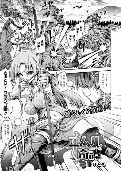 ほりとも美人でスタイルも良く、整った凛々しい容姿を持つが、どことなく抜けた性格をしているエルフの弓兵ニムル。彼女は、エルフの森へ進軍する化け物の群れを偵察するつもりが勢い余って特攻してしまい、巨大な触手に拘束されてしまう。這い寄る触手に豊満な胸をまさぐられ、敏感な尻穴をなぶられて、あまりの快感に失禁してしまうエルフ少女。やがてごつごつとした肉触手が膣内と尻穴に同時挿入され、交互に突かれる悦楽に溺れてしまい…