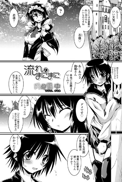 お坊っちゃまの忍は、メイドの伽耶に命じられて、セーラ服で公園まで歩くことに。恥ずかしがりながら短いスカートの裾を押さえて歩く忍の様子に、伽耶は大満足。忍は尿意をもよおすが、トイレに行くことを許してもらえない。伽耶は忍がお漏らしをするところを見るために、利尿剤を密かに飲ませていたのだ。伽耶を変態という忍だが、彼もまた女装で興奮して勃起していた。伽也に導かれて、彼女の口の中に放尿してしまう忍だが。