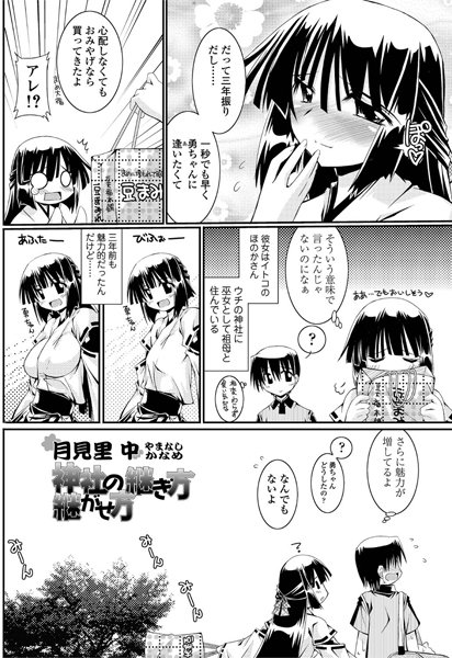 月見里中某神社の跡取り、勇はひさびさに田舎へ帰ってくる。そこには巫女をしている美しいイトコのほのかがいた。三年前も魅力的だったが、胸がずっと大きくなって、さらに魅力が増している。勇がご神体の猫をバカにすると、ほのかに猫神様がとりつき、ほのかは猫耳、猫シッポに。いきなり勇にキスして、フェラを始める。舌のザラッとした感触と、根本から吸い上げる激しさに、勇は叫びながらイッてしまう。実は、これは呪いどころかほのか…