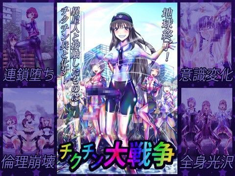 侵略宇宙人の出す洗脳汁により 地球人がツルテカ光沢なチクチン兵へと変えられて 肉体の恥辱と精神の汚染とによって、次々と連鎖堕ちさせられてしまう そんなシチュエーションのオリジナル18禁CG+SSになります。 快楽堕ちや異常世界、乳首ちんぽやフタナリ、ラバーや女体化やアヘ顔など ピンと来た方はどうぞ。 CG基本15枚(汁差分や変化差分など含めて52枚) …