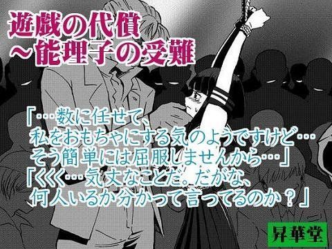 能理子は18歳の大学1年生。SMクラブのM嬢のアルバイトを始め、1か月の研修を終えたばかり。ある週末、ほんの悪戯心から女子校生に扮して仕事の現場まで歩いて行こうとしたその途中、下級生らの目に留まり拉致されてしまう。●●時代から可愛くてエロで目立ちまくっていた能理子は、ずっと彼らの性欲の対象として見られていたのだった–テキスト約41000字+イラスト8枚(…