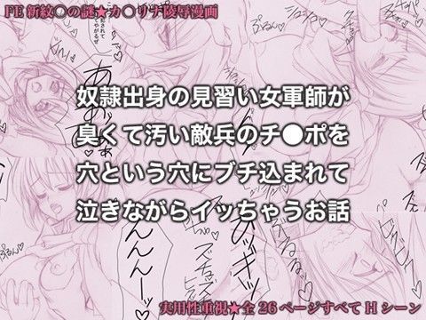 FE新●章のカ●リナ凌●漫画です。 敵軍に敗北し、ク●スを喪ったカ●リナ。 ノ●ダの奴●市場で面白半分に犯●れていたカ●リナの肉体は すべての穴が調教済み、誰に犯●れてもイケる体になっていて、 ク●スを殺した憎むべき敵兵に輪●されているのに感じてしまう。 上の口と下の口と後ろの穴を同時に犯●れて絶頂し、 2本のペ●スでおま●こを同時に犯●れて絶頂し… …